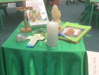 All classrooms have a focal point which provides a focus for daily individual and class prayer and this is regularly monitored by the Mini Vinnies (Chaplains). As a result, our pupils experience and appreciate a wide range of prayer and this has a positive impact on their spiritual and moral development.